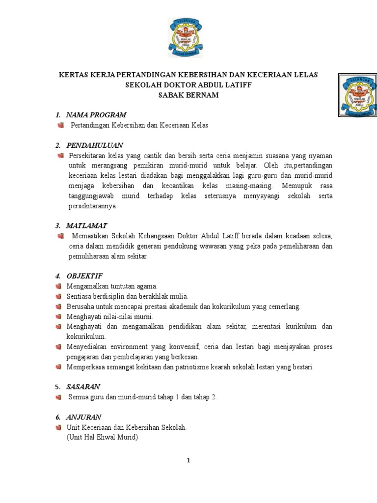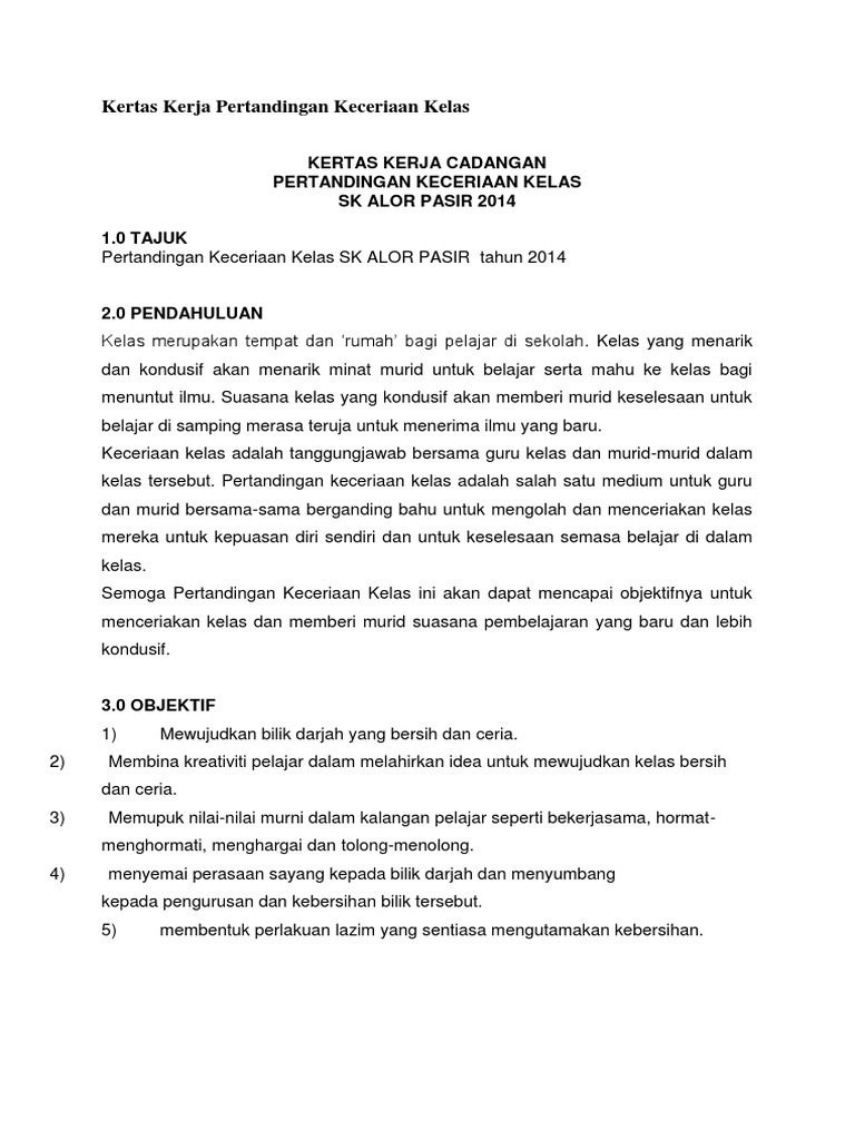 Kertas Kerja Pertandingan Kebersihan Dan Keceriaan Kelas Sk Pdf